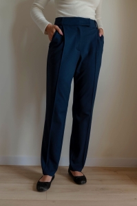 Granatowe spodnie Kastrup to elegancja, która otula i pozwala czuć się swobodnie – Idealne, gdy spieszysz się rano na spotkanie, siadasz do home office czy wychodzisz na kawę z przyjaciółką. Powstają w Polsce z polskiej, miękkiej, elastycznej dzianiny najwyższej jakości. Nad każdą parą pracujemy około 4 godziny, dopracowując każdy detal – dzięki temu spodnie otulają komfortem i dają poczucie perfekcji przy każdym ruchu.