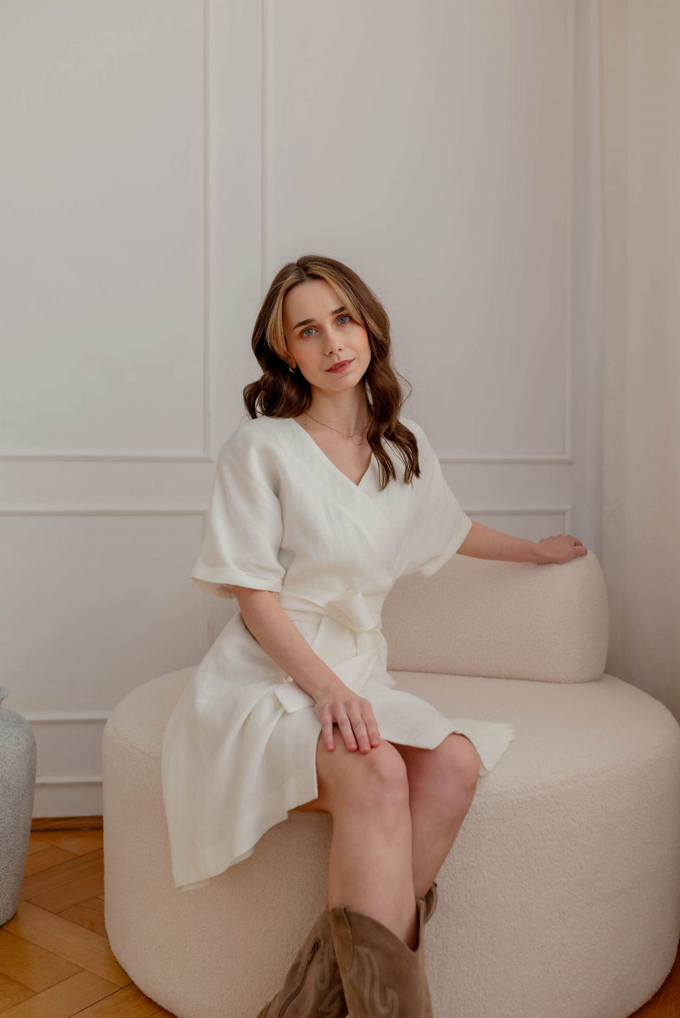 Idealna jako lniana sukienka do pracy, na spacer, do walizki wakacyjnej – lub po prostu na dzień, który zaczynasz dla siebie.