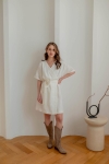Sukienka jest wiązana w talii, więc łatwo dopasowuje się do Twojej sylwetki.