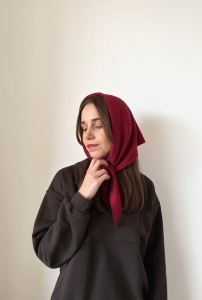 Minimalistyczna forma i uniwersalny wygląd sprawiają, że pasuje do wszystkiego. Zgaszony odcień czerwieni łatwo łączy się z garderobą i subtelnie wprowadza kolor do basicowych stylizacji. Noś ją klasycznie na szyi, nonszalancko jako bandamę, na głowie w stylu francuskiego luzu. Jedna chusta – wiele momentów, wiele historii.